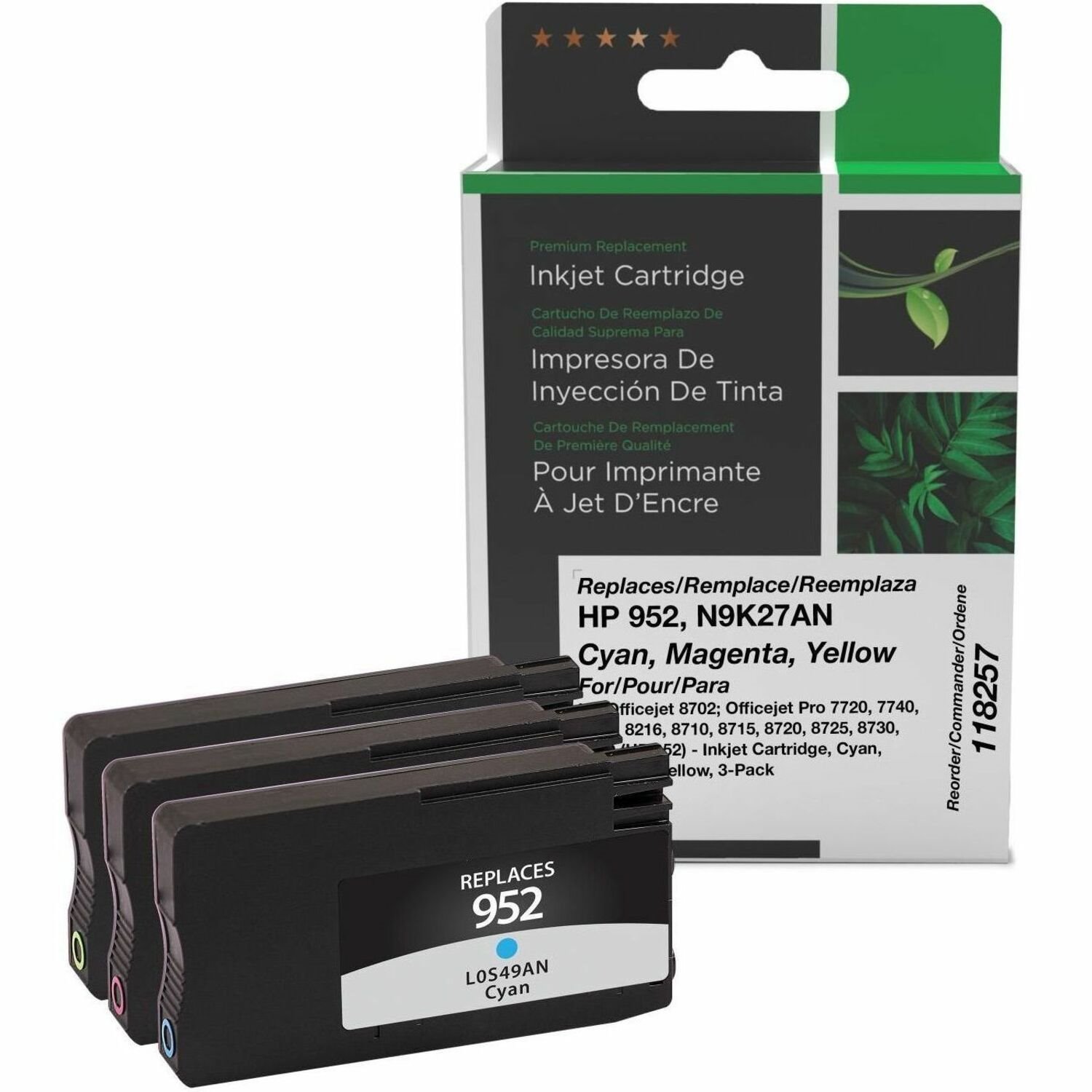 Designed to be a true quality alternative to the OEM while offering significant savings. Manufactured in ISO 9001:2008 certified North American facilities. 100% guaranteed to meet or exceed OEM performance. OEM# N9K27AN. Clover Imaging. HP Officejet 8702; Officejet Pro 7720, 7740, 8210, 8216, 8710, 8715, 8720, 8725, 8730, 8740. Contains a minimum of 98% post-consumer recycled material. Yields 700 x 3 pages. Cyan, Magenta, Yellow. 3/pkg.